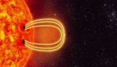 The Sun has a very large and very complex magnetic field. The magnetic field at an average place on the Sun is around 1 Gauss, about twice as strong as the average field on the surface of Earth (around 0.5 Gauss). Since the Sun's surface is more than 12,000 times larger than Earth's, the overall influence of the Sun's magnetic field is vast. The magnetic field of the Sun actually extends far out into space, beyond the furthest planet (Pluto). This distant extension of the Sun's magnetic field is called the Interplanetary Magnetic Field (IMF). The solar wind, the stream of charged particles that flows outward from the Sun, carries the IMF to the planets and beyond. The solar wind and IMF interact with planetary magnetic fields in complex ways, generating phenomena such as the aurora. Overall, the basic shape of the Sun's magnetic field is like the shape of Earth's field... or like the field of a simple bar magnet. However, superimposed on this basic field (called a dipole field) is a much more complex series of local fields that vary over time. Places where the Sun's magnetic field is especially strong are called active regions, and often produce telltale sunspots.